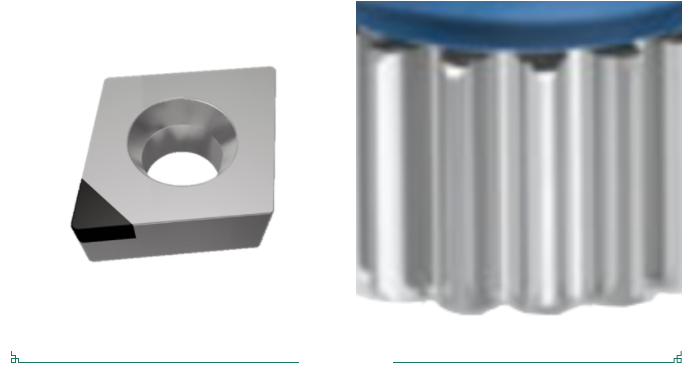 Das importierte Kopfmaterial erm?glicht hohe Zeitspanungsvolumina bei h?heren Schnittgeschwindigkeiten, wodurch sich die Bearbeitungszeiten und die Maschinenverfügbarkeit für gro?e Zahnradbohrungen erheblich verbessern und Sie mehr Zeit und Kosten sparen.